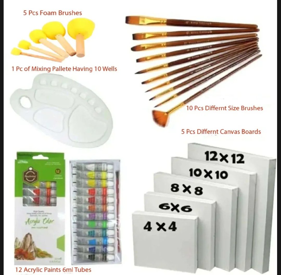 - 5 Canvas Boards (4×4, 6×6,8×8,10×10,12×12)
